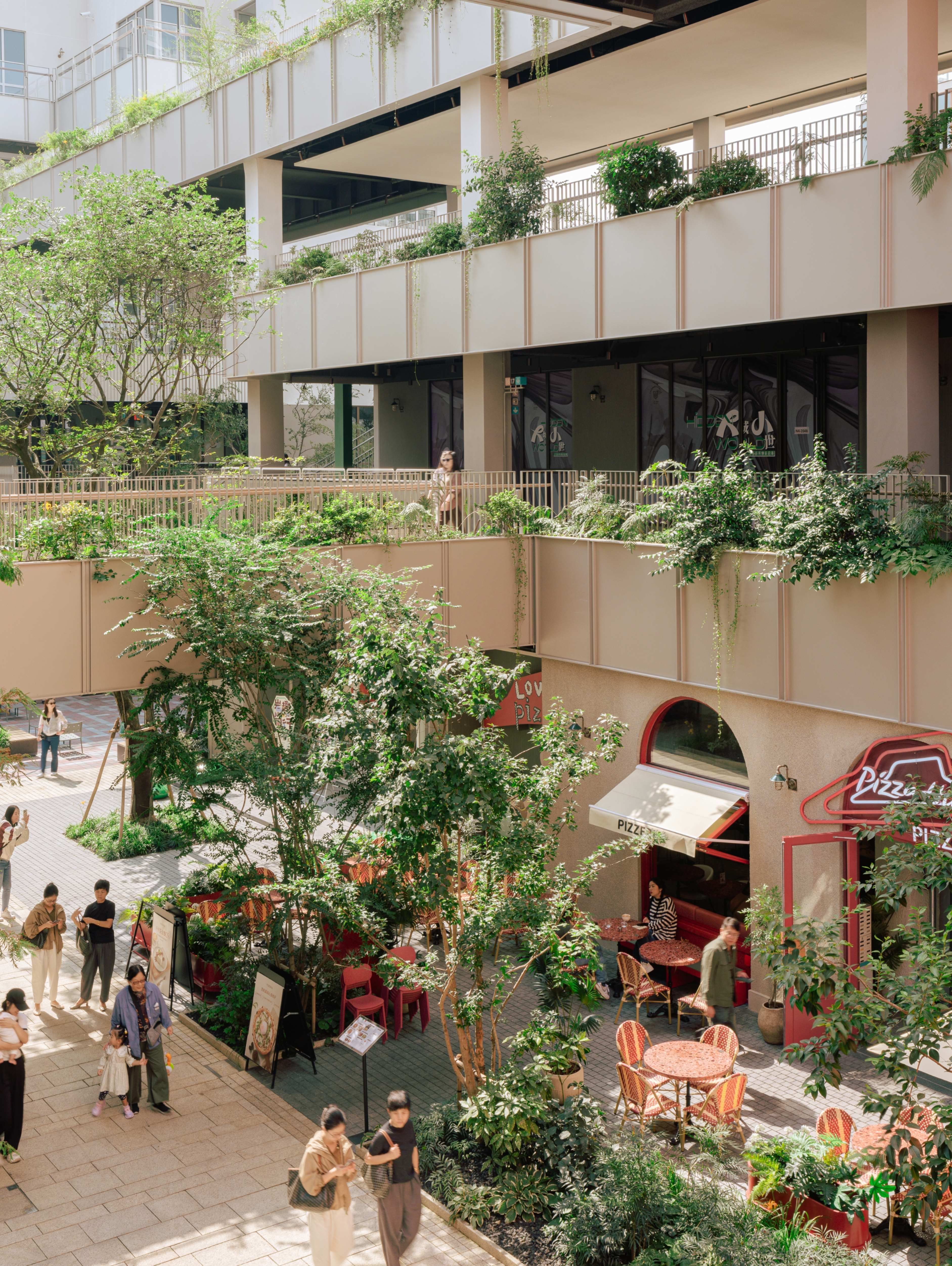 In terms of placemaking, Columbia Circle Phase II incorporated extensive green spaces. Meticulously arranged greenery, including cedar trees and ferns, creates a layered natural landscape, providing locals with a relaxing ambience. Outdoor dining and recreational spaces foster deeper connection between visitors. Rooftop gardens, small terraces and corner gardens invite exploration of urban development.