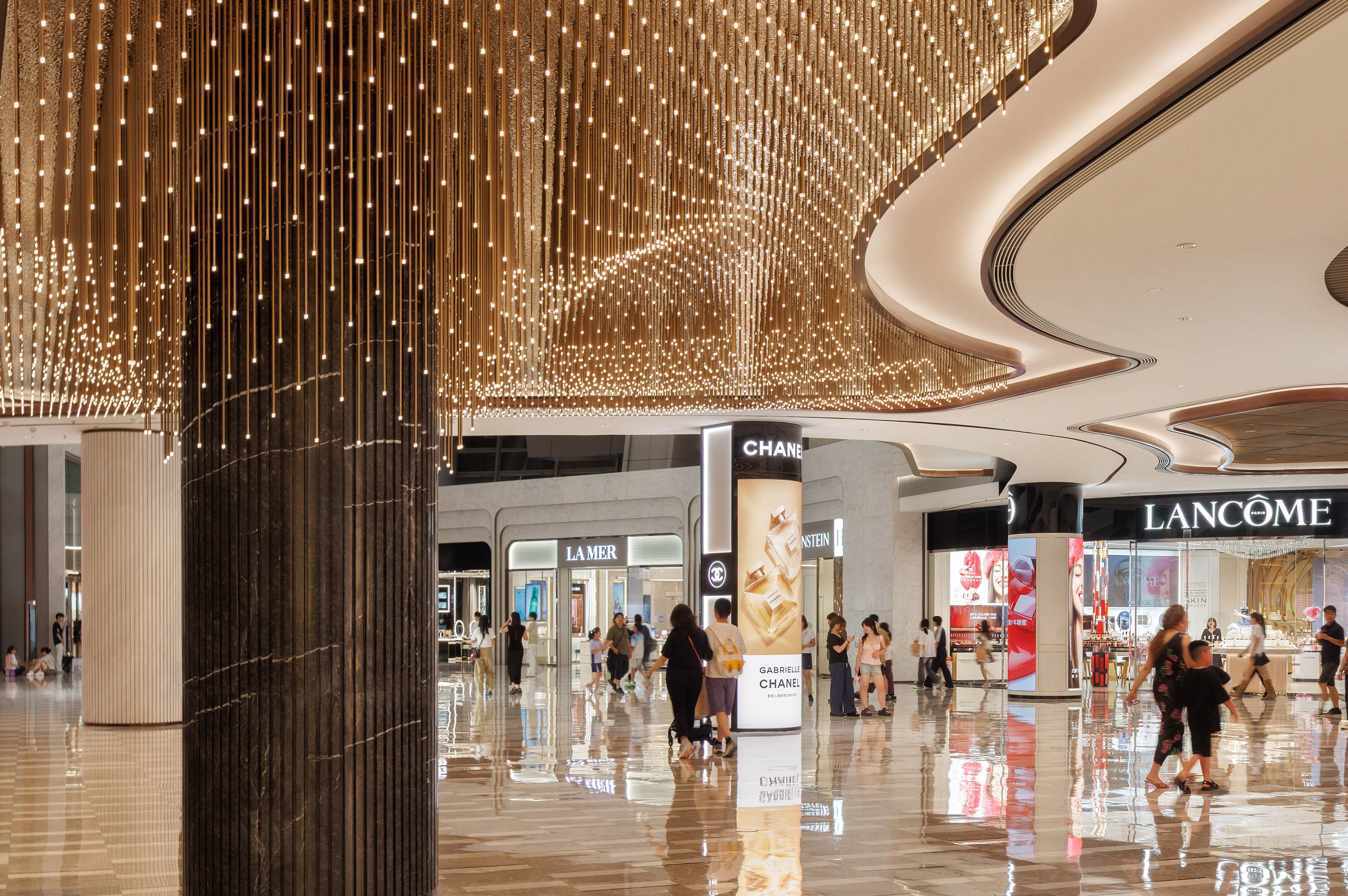 Inspired by Jinan’s springs, landscapes and local artistry, we infused cultural elements throughout. Entrance portals are transformed into cascading atria, using materials that evoke the flowing nature of the local Baotu Spring. A balanced palette of terracotta and stone enhances lift lobbies, while lighting installations mimic the gentle movement of water. The motif is complemented by pleasing curved forms and natural materials. Many materials are locally sourced, and work with our air quality strategies to improve the mall’s sustainability.