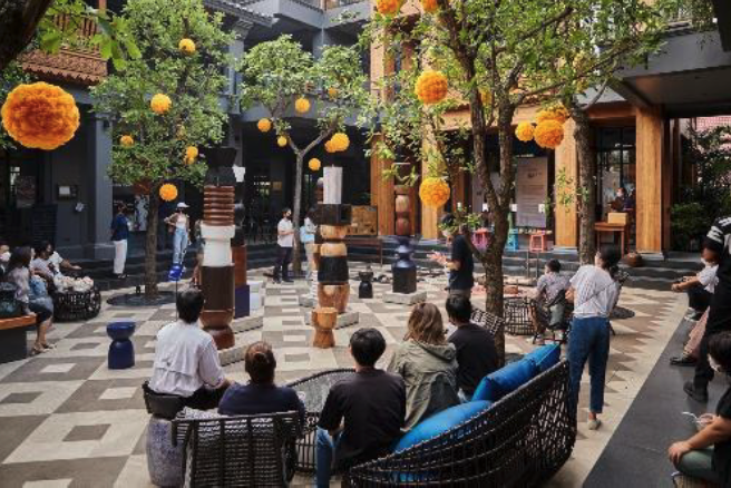 要找到这个“麻将馆”,必须走过黄竹夹道的泥泞路,绕过榕树的气根,沿途有长椅和桌子,全是附近居民带来的,与政府无关。这些居民大多是老人家,他们在树上即兴安装健身设备,把空地改建成“健身房”;此外还有摆满捐赠神像的小寺庙和栽种花卉、香草和蔬菜的小花园,甚至乒乓球桌。